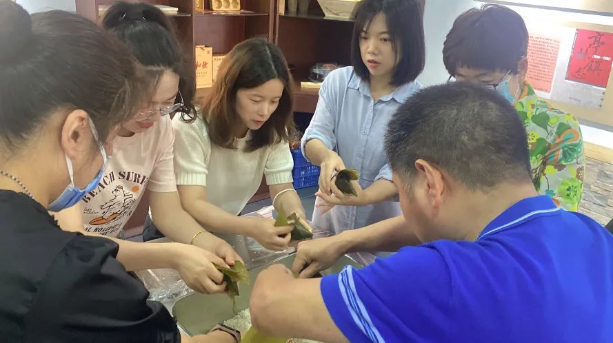 读书分享会后,每位职工亲手体验包粽子活动,参与的职工在指导下,积极学习包粽子的手法,短短时间内,一盆盆粽子就完成了。