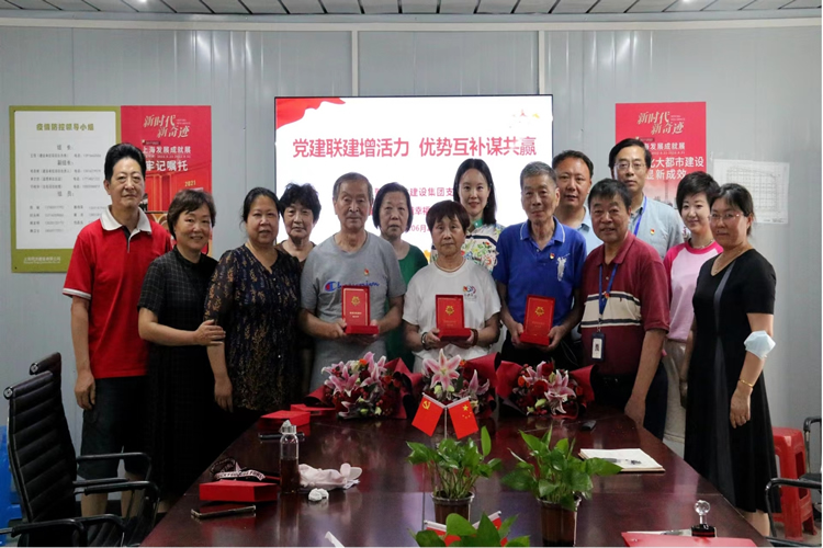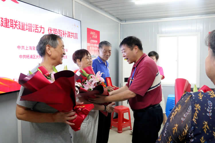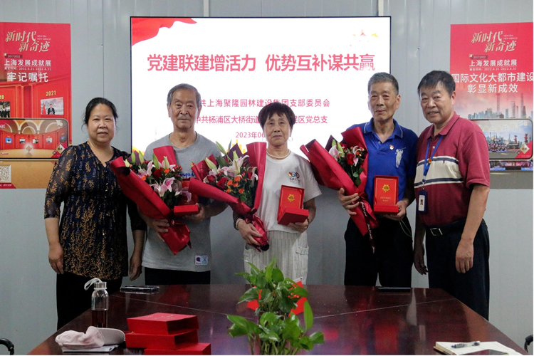 单耀晓书记介绍了聚隆公司的创业历程和发展规划;对幸福村居民区长期以来关心、支持企业表示衷心感谢,希望以此共建为契机,健全党建联动机制、资源联享机制、发展理促机制、文明联创机制,打造区域内党组织共享共用的学习阵地、教育阵地、宣传阵地、活动阵地,互动互补,并根据实际和社区居民的需求,探索更多的社区公益项目;此外,双方还围绕社区党建联建、“美丽家园”建设等话题进行了深入的探讨与交流;会上,单耀晓书记向辖区50年党龄的3名老党员颁发了荣誉纪念章、献上了鲜花,并衷心祝福他们健康快乐,共迎共庆党的102周年生日。