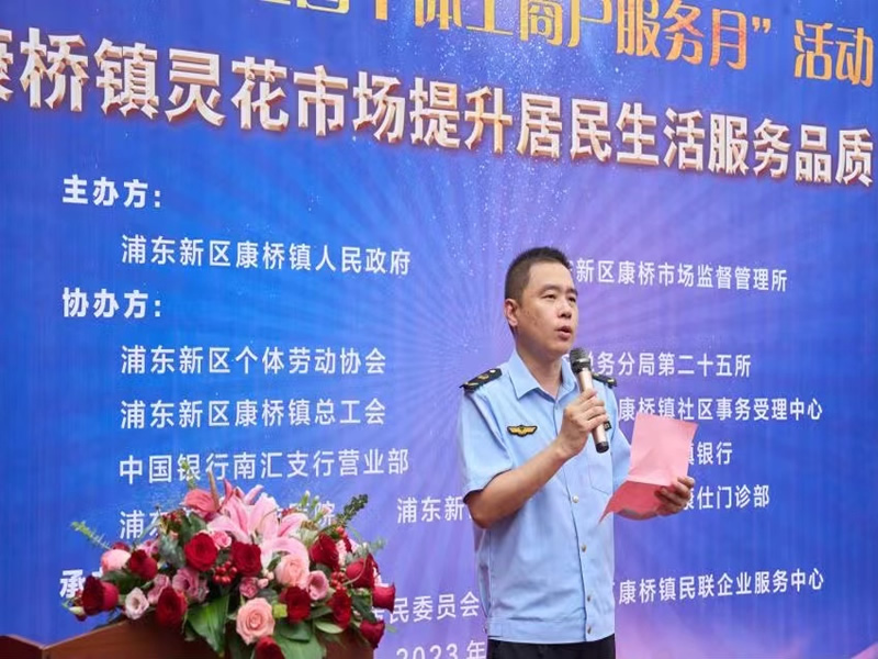为全面落实《促进个体工商户发展条例》,提升个体工商户发展质量,按照市场监管总局统一部署,7月18日,由康桥镇人民政府、康桥市场监督管理所主办,税务部门等单位协办的第二届“全国个体工商户服务月”活动暨康桥镇提升居民生活服务品质活动顺利举行。