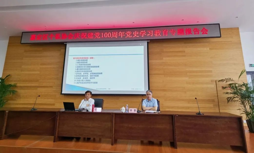 嘉定区个私协会以这次专题报告会为契机,进一步强化措施、创新载体,努力做到学史明理、学史增信、学史崇德、学史力行。用党的奋斗历程和伟大成就鼓舞斗志、明确方向,用党的实践创造和历史经验启迪智慧、砥砺品格,以优异成绩迎接建党一百周年。