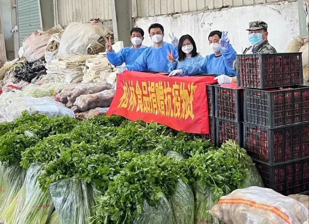 不仅如此,在市民生活物资短缺的情况下,总经理戚㨗,利用各种渠道,于4月19日,从山东购买10000斤新鲜蔬菜,对接松江叶榭社区相关部门,将新鲜蔬菜捐献分发给市民群众。