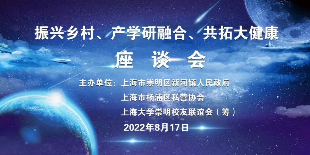 8月17日下午,为进一步了解崇明乡村振兴政策,探讨及推动政、校、企深度融合,由上海市崇明区新河镇人民政府、上海市杨浦区私营企业协会、上海大学崇明校友联谊会(筹)联合主办的“振兴乡村、产学研融合、共拓大健康”政、企、校座谈会在上海蓝天大厦(上海新河经济开发区)顺利举行。